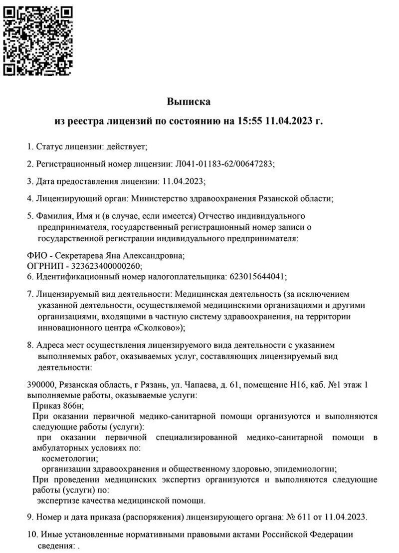 Занимается диагностикой и лечением таких заболеваний, как акне, пигментные пятна, гемангиомы. Также проводит контурную пластику, биоревитализацию, лифтинг, мезотерапию, пилинг и чистку лица.