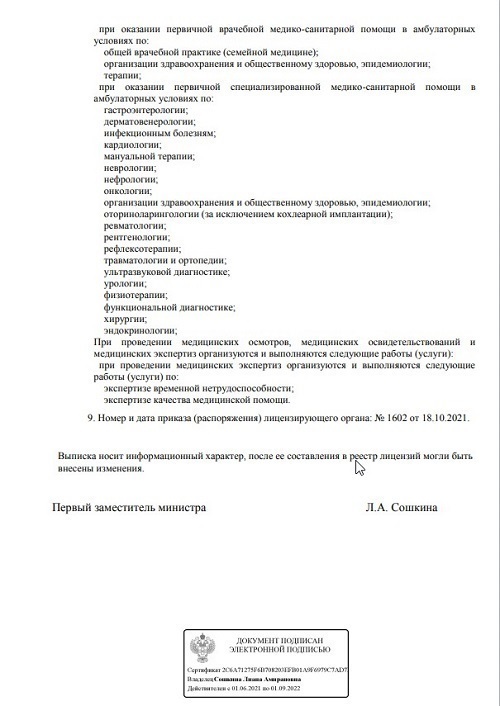 Проводит диагностику и лечение острых и хронических заболеваний терапевтического профиля, в том числе бронхита, ветрянки, гриппа, кори, краснухи, ОРЗ и ОРВИ, пищевого отравления, простуды, скарлатины и др.