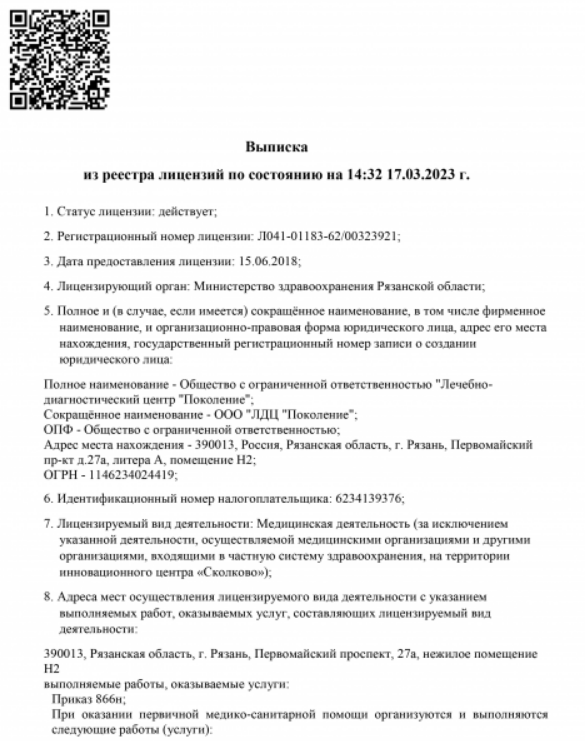Диапазоны цен на приём врачей и специалистов, услуги и диагностику в Лечебно-диагностический центр Поколение Плюс в Рязани.